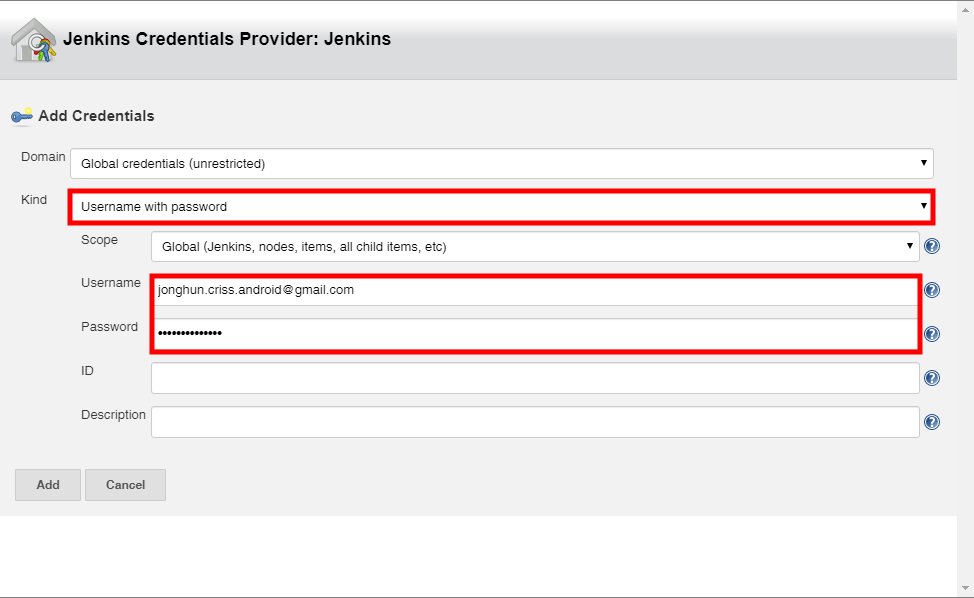 URL을 넣어주고, 아래 Add를 눌러 Credentials 를 추가합니다.